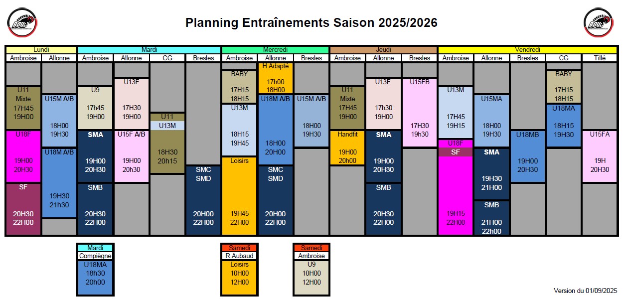Voici le planning pour cette saison 2025-26 (susceptible d'ajustements)